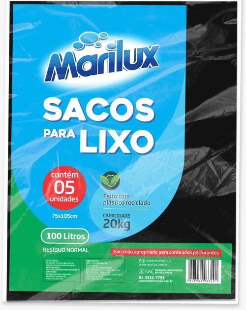 SACO PARA LIXO MARILUX PRETO C/12 5X100LT - 7898951933491